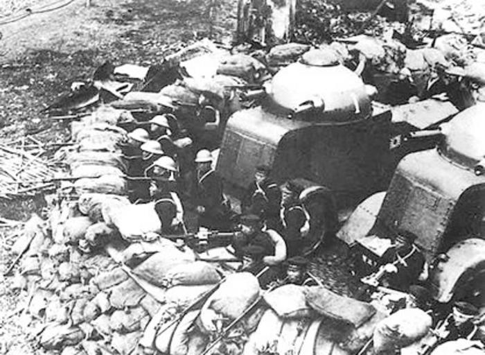 | Keywords: Shanghai Special Landing Force, Vickers-Crossley armored cars in the defensive position.jpg en Japanese Shanghai Special Landing Force with their Vickers-Crossley armored cars in the defensive position ja ハリネズミの陣を張る陸戦隊とヴィッカース・クロスレイ装甲車1号車 左 と6号車 右 http //bbs tiexue net/post_3393096_1 html Japan military reporter 1932 PD-Japan-oldphoto thumb left 200px Similar photo Vickers-Crossley M25 Shanghai Special Naval Landing Force Battle of Shanghai 1932 - Japanese forces Armored fighting vehicles of the Shanghai Special Naval Landing Force Shanghai International Settlement Japanese Special Naval Landing Forces |