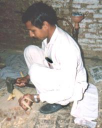 Keywords: Shaping Head.jpg Skilled workman shaping head of a hockey stick in Pakistan 1989 2006-09-16 own assumed Martin ZigZag Field hockey sticks Men at work Field hockey in Pakistan