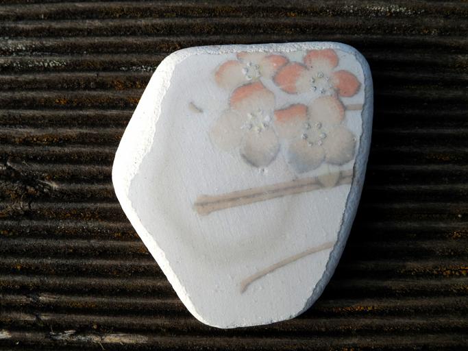 Keywords: shard white sanded floral design old bleached out filigree drawing tender ornament decor noble pattern artistically design style decorative glaze tile tile object object chic pretty painted colored decorated flotsam ceramic