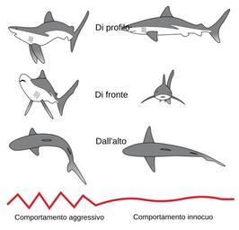 | Keywords: Shark threat display it.svg Threat display of a grey reef shark The postures become more exaggerated as the danger perceived by the shark increases Shark_threat_display svg 2010-04-18 19 35 UTC Shark_threat_display svg Chris_huh derivative work Andrea dematteis 1987 Shark_threat_display svg Animal aggression Selachimorpha |