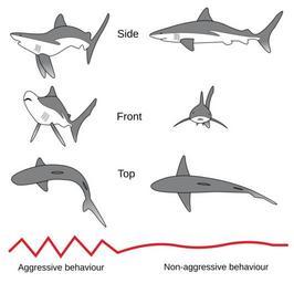 | Keywords: Shark threat display.svg Threat display of a grey reef shark The postures become more exaggerated as the danger perceived by the shark increases Own 2007-03-06 Chris_huh <gallery> Image Posture-requin-gris svg French version Image Shark threat display it svg Italian version </gallery> Translation_possible Selachimorpha SVG biology Animal aggression Threats |