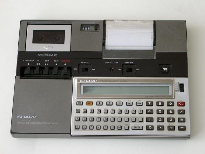 Keywords: Sharp PC 1251.jpg fr Mini ordinateur Pocket Computer Sharp PC-1251 sur son support Sharp CE-125 imprimante et lecteur de cassette en Pocket Computer Sharp PC-1251 with its printer and microcassette recorder 2011-09-03 own Mspecht cc-zero Uploaded_with_UploadWizard Sharp calculators Sharp pocket computers Microcassette Microcassette-based tape drives Data recorders Printers |