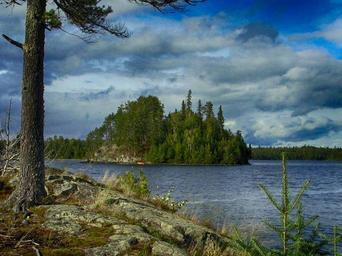 Keywords: sharp rock island sky clouds hdr lake water reflections forest trees woods shoreline summer spring scenic