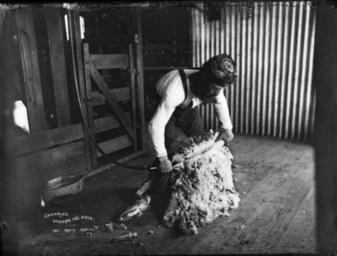 | Keywords: Shearing, opening the neck from The Powerhouse Museum Collection.jpg 'http //www flickr com/photos/powerhouse_museum/sets/72157605177272357/ Rural Life' Pictures from The Powerhouse Museum Flickr-Powerhouse-Museum-image The Powerhouse Museum ca 1900 Author Author died more than 70 years ago - public domain PD-old Sheep shearing in Australia Agriculture in Australia Black and white photographs | ||||