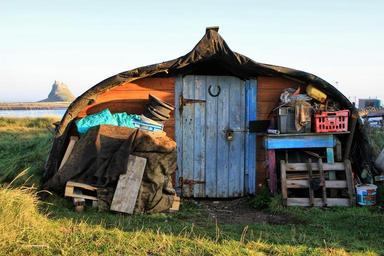 Keywords: shed hut old wooden wood cabin boat northumberland holy island traditional