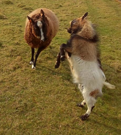 Keywords: sheep animals farm animals goat prance rebellious meadow pasture brown sheep young goat nature countryside outdoor life