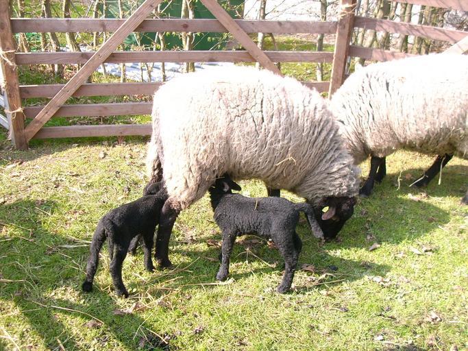 Keywords: sheep black lambs easter animal world farm suckle drink