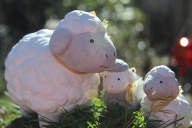 Keywords: sheep family figures stone figures cute flock mama children young animals young