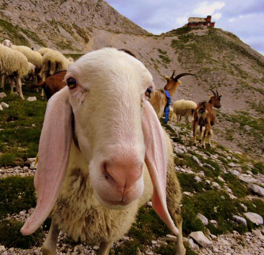 Keywords: sheep flock animal mountain grass first floor refuge