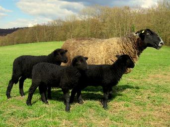 Keywords: sheep mother lamb lambs black sheep pasture meadow