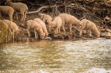 Keywords: water sheep merino lamb paddock soft agriculture mammal white river curious row wool life interest stock mob gaze farm ewe flock countryside cute woolly stare young ribs look face defiant maternal herding rural