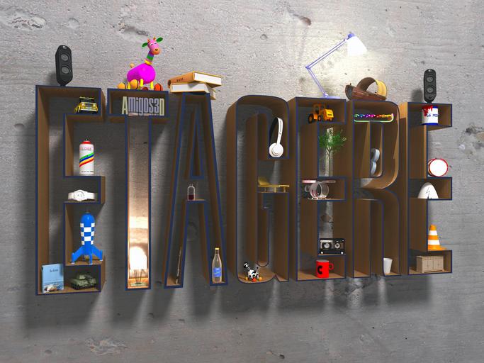 Keywords: shelf objects 3d light rocket car glass mug books cabinet compass bottle instruments biblo char tank deck chair