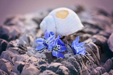Keywords: shell empty broken damaged flowers blue siberian blaustern stone nature close