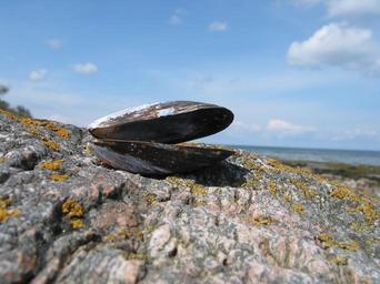 Keywords: shell sea baltic sea water beach rock collect seashell open shell holidays close holiday lake summer blue sky relaxation wave clouds good weather weave washed up on fund empty creature nature relax air wind frisch