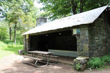 Keywords: appalachian hiking trail table shelter stone nobody green cloud day mountains trees walking grass backpacking picnic door building chimney roof forest appalachian trail virginia path cabin nature camping