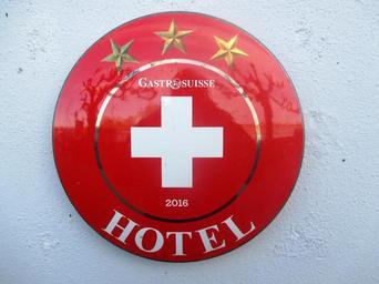 Keywords: shield about red white golden star marking mirroring hotel switzerland