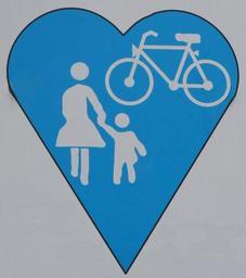 Keywords: shield characters street sign note road mother child bike wheel traffic heart attention