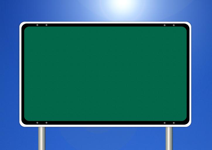 Keywords: shield directory note green sky sun signposts clouds town sign place name sign empty label insert text