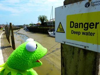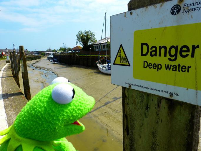 Keywords: shield warning danger of water ebb tides water beach river kermit frog green