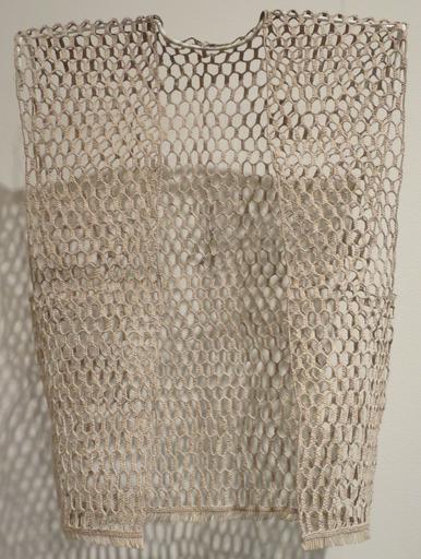 Keywords: Shifu Asetori (paper thread sweat absorber) from Japan, Honolulu Museum of Art.JPG en Shifu asetori paper thread sweat absorber from Japan 1850-1860 kozo or paper mulberry Broussonetia papyrifera handmade paper made into shifu' paper thread plaited Honolulu Museum of Art own Hiart photo 2016 Cc-zero Textiles of Japan in the Honolulu Museum of Art Paper clothing |