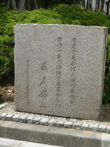 | Keywords: Shiina Rinzo Stele DSCN9582 20100516.JPG en Literary monument of the Shiina Rinzō Japanese novelist 山陽電鉄 社前にある椎名麟三文学碑 投稿 が撮影 Shiina Rinzō japanische Schriftstellerin Shiina Rinzō romancier japonais own Ogiyoshisan 2010-05-16 Steles of Hyogo prefecture Sanyo Electric Railway |