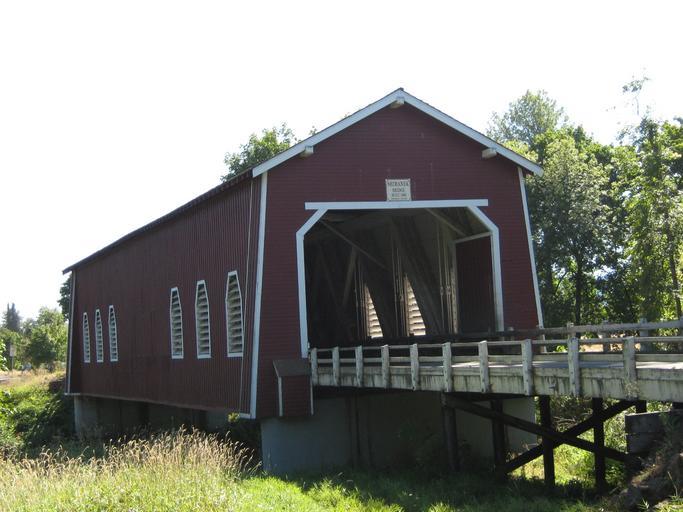 Keywords: Shimanek Covered Bridge.JPG en Shimanek Covered Bridge over Thomas Creek near Scio Linn County Oregon USA On the National Register of Historic Places Own Katr67 Thomas Creek-Shimanek Covered Bridge Scio Oregon