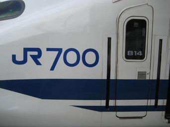 | Keywords: Shinkansen Series 700 JR700 Symbol.JPG The JR700 logo on a driving car of JR West 700 series shinkansen set B14 at Okayama Station ja JR西日 の新幹線700系電車(B編成)の先頭部 先頭車両の運転席両脇には JR700 の文字が施されている 画像はB14編成723形3000番台 2011年1 9日 岡山駅24番線で撮影 Own Sotetsuyama 2011-01-09 Cc-zero Shinkansen 700 |