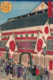 | Keywords: Shintomi-za Kaigyō-shiki Hana no Gasu-tō.jpg 新富座開業式花瓦斯燈 en Tōkyō Meisho Zue Shintomi-za Kaigyō-shiki Hana no Gasu-tō The Grand Opening of Shintomi Theater and Its Fabulous Gas Lights http //www2 ntj jac go jp/dglib/edc_dic/dictionary/dic_sa/dic_sa_26 html 安政五年 / 1858 明治十 年 / 1878 Author PD-art Ukiyo-e of kabuki theaters Nishiki-e in Meiji period |