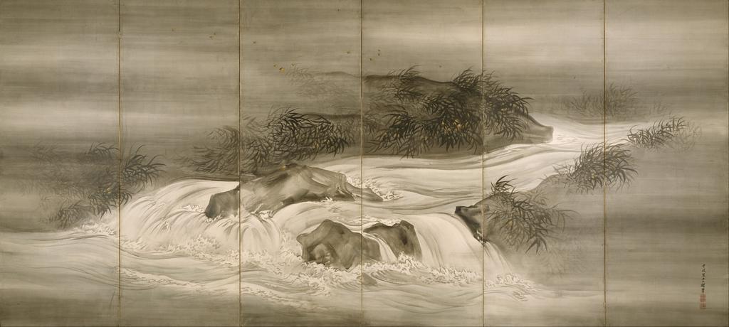 Keywords: Shiokawa Bunrin - River Landscape with Fireflies - Google Art Project.jpg Japanese Meiji period 1868-1912 One of a pair of six-fold screens ink with slight color and gold paint on paper special url_id TQG_QnLspZLoSg PD-old-100-1923 1877 Shiokawa Bunrin Google Art Project works by Shiokawa Bunrin |