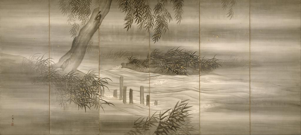 Keywords: Shiokawa Bunrin - River Landscape with Fireflies - Google Art Project (392122).jpg Japanese Meiji period 1868-1912 One of a pair of six-fold screens ink with slight color and gold paint on paper special url_id TQG_QnLspZLoSg PD-old-100-1923 1877 Shiokawa Bunrin Google Art Project works by Shiokawa Bunrin Google Art Project |