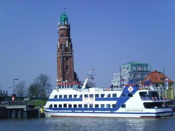 Keywords: Ship Adler Princess.jpg en The excursion ship Adler Princess in Bremerhaven de Das Ausflugsschiff Adler Princess verlässt den Neuen Hafen in Bremerhaven durch die Schleuse Richtung Weser own Tvabutzku1234 2010-04-25 53 32 46 73 N 8 34 21 12 E region DE_heading W Adler Princess ship 1989 Leuchtturm Bremerhaven Oberfeuer Passenger ships in Bremerhaven