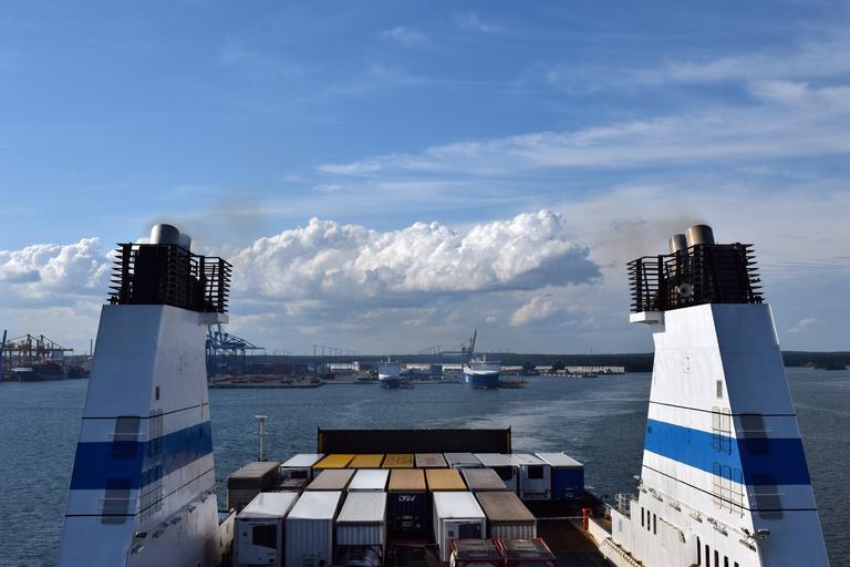 Keywords: ship container port helsinki finland container ship scandinavia clouds sea lake baltic sea