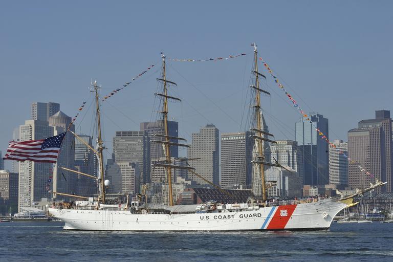 Keywords: ship cutter three masted barque sailing boston massachusetts water harbor coast guard training sea ocean vessel navigation deck sails eagle usa
