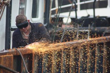 Keywords: ship cutting tools grinder goggles shipwright man worker hull cut shipping industry service adult delivering sparks heat welding