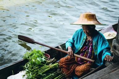 Keywords: ship paddled water market river monger khlong bang luang thailand