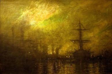 | Keywords: Ship - Painting by Mednyánszky.jpg Hajó Ship Oil on canvas 73 5x104cm Private property own ; Photo by Szilas at the exhibition in the Gallery of Judit Virág Budapest Creator László Mednyánszky PD-old-auto 1919 Other versions Paintings by László Mednyánszky in private collections Paintings of ships |