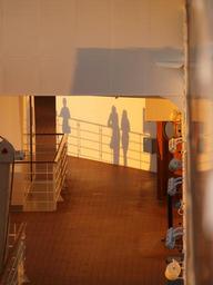 Keywords: ship's rail sunset shadow railing ship hispanic cruise passenger ship cruise ship