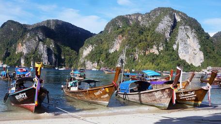 Keywords: ship sea seashore thailand fishing to struggle against horizon tour a beautiful view sailing boat summer travel peace sunny blue hope phi phi island