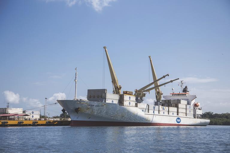 Keywords: ship shipping bananas fruit container cargo big transport boat vessel heavy sky blue sea ocean