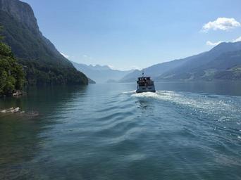 Keywords: ship water lake walen lake mountains shipping landscape wave