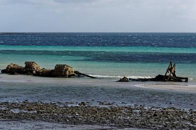 Keywords: shipwreck sea ocean water ship boat wreck tourism seascape rusting ship sand beach sky coastline shore scenery marine vessel nautical