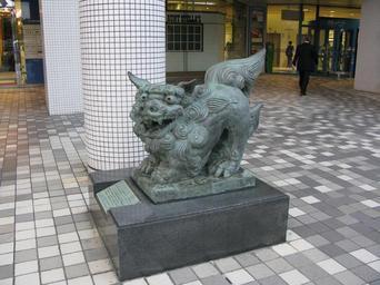 Keywords: Shisa (male).jpg en The male shisha at the front of Mitsukoshi department store near the Kokusai doori in Naha Okinawa Japan Own Bình Giang 2008-03-19 Bình Giang Shisa Naha Pictures by Binh Giang