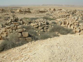 Keywords: ShivtaHomes.JPG Residential neighborhood remains in Shivta Negev Desert Israel self-made; Mark A Wilsonhttp //markwilson voices wooster edu/ Wilson44691 Shivta