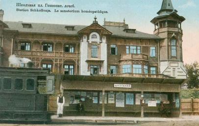 | Keywords: Shkolnaya colour postcard.jpg Железнодо ожная станция Школьная на до еволюционной отк ытке Railway station Shkolnaya in pre-revolutionary card http //www nlr ru/exib/railway/images/1shkolnaya jpg nlr ru s 1900 Unknown publisher PD-Old Shkolnaya railway station Postcards of Saint Petersburg |