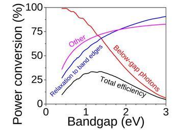 | Keywords: ShockleyQueisserBreakdown.svg en The Shockley-Queisser limit for the maximum possible efficiency of a solar cell black and its contributing factors other curves The x-axis is the bandgap of the solar cell The red curve is the ideal efficiency if the only loss was the fact that below-gap photons are not absorbed; the blue curve is if the only loss was the relaxation of hot photogenerated electron-hole pairs down to the band edges; and the pink curve represents the other losses namely the tradeoff between higher radiative recombination and lower operating voltage If you multiply together these three curves you get the black curve The curves are all wiggly because of IR absorption bands in the atmosphere I used the actual AM1 5G solar spectrum data I cross-checked my total efficiency curve with independently-calculated ones and they agree to high accuracy http //www opticsinfobase org/abstract cfm URI OSE-2010-SWA1 http //www opticsinfobase org/abstract cfm URI OSE-2010-SWC4 The other curves besides the black curve are not published in exactly this form to my knowledge but it's a straightforward part of the same calculation own Sbyrnes321 2011-02-16 The data-file for this graph is freely available ask me at http //en wikipedia org/wiki/User_talk Sbyrnes321 I did the calculation in Mathematica the plotting in Origin and the PDF-->SVG conversion in Inkscape The Mathematica source code is posted on my website http //sbyrnes321 byethost11 com/ Cc-zero Photovoltaic power schemas and diagrams Solar cell schemas and diagrams |