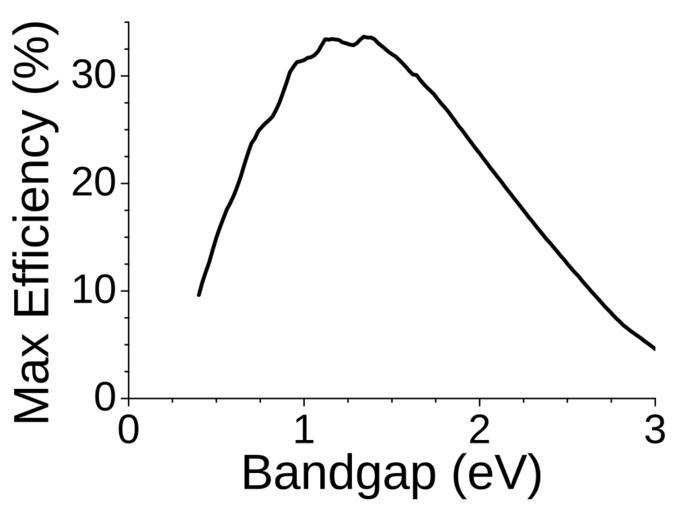 Keywords: ShockleyQueisserFullCurve.svg en The Shockley-Queisser limit for the maximum possible efficiency of a solar cell The x-axis is the bandgap of the solar cell the y-axis is the highest possible efficiency ratio of electrical power output to light power input Assumes a single-junction solar cell under unconcentrated light and some other assumptions too The curve is wiggly because of IR absorption bands in the atmosphere I used the actual AM1 5G solar spectrum data Sometimes people approximate the solar spectrum by a 6000K blackbody spectrum instead and they get a smoother curve with slightly different values I cross-checked my curve with independently-calculated ones and they agree to high accuracy http //www opticsinfobase org/abstract cfm URI OSE-2010-SWA1 http //www opticsinfobase org/abstract cfm URI OSE-2010-SWC4 own Sbyrnes321 2011-02-08 ShockleyQueisserFullCurve DE svg The data-file for this graph is freely available ask me at http //en wikipedia org/wiki/User_talk Sbyrnes321 I did the calculation in Mathematica the plotting in Origin and the PDF-->SVG conversion in Inkscape The Mathematica source code is posted on my website http //sjbyrnes com/ Photovoltaic power schemas and diagrams Solar cell schemas and diagrams |