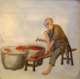 | Keywords: Shoe-maker, China, on Tetrapanax papyrifer paper - Robert C. Williams Paper Museum - DSC00389.JPG en Exhibit in the Robert C Williams Paper Museum Atlanta Georgia USA This work is old enough so that it is in the public domain Photography was permitted in the museum without restriction 2014-03-20 13 12 28 own Daderot PD-old-100 cc-zero Robert C Williams Paper Museum Uploaded with UploadWizard Paintings of people from China | ||||