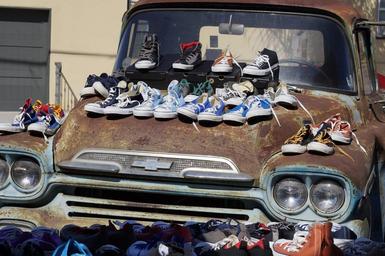 Keywords: shoe sale sidewalk sale rusty truck small business deal