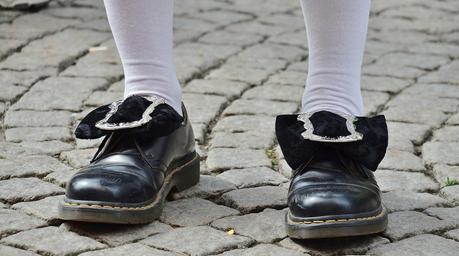 Keywords: shoes clothing footwear feet men's man standing autumn black shoes macro close-up