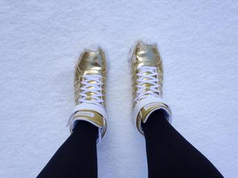 Keywords: shoes golden snow winter cold gold